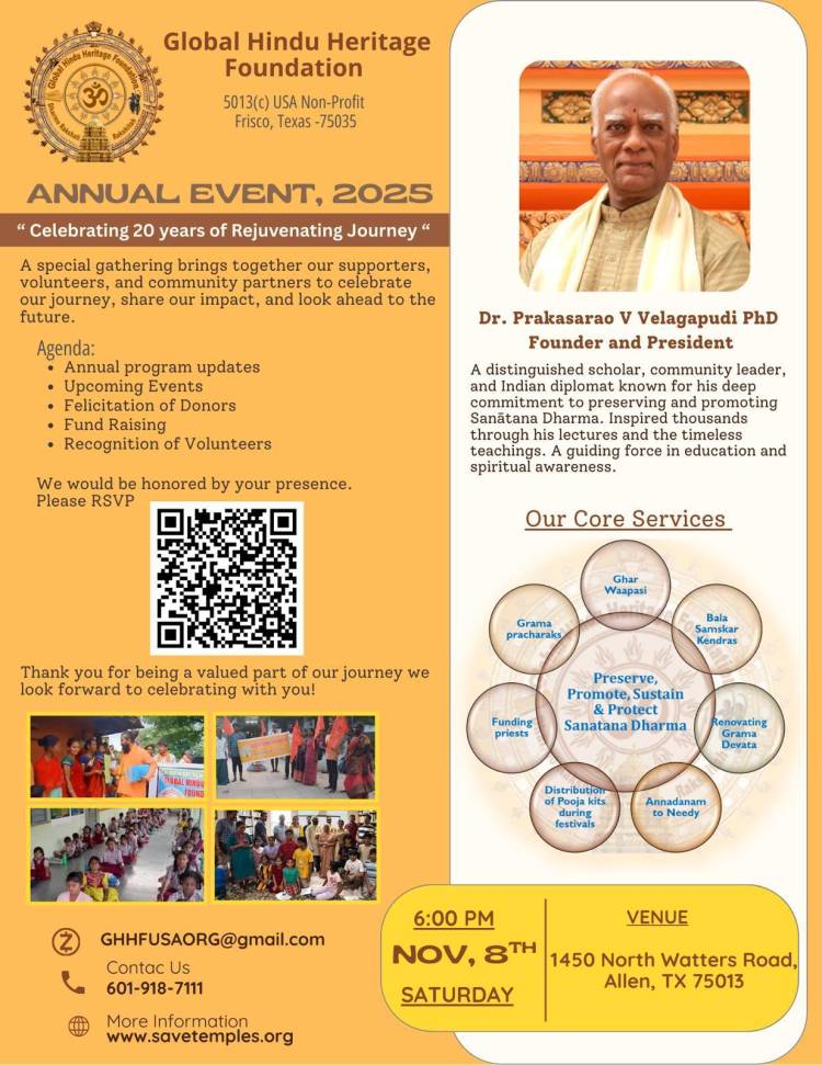 [GHHF] Annual Appreciation Gala Dinner on November 8th; Also, an occasion to highlight 19 years of activities to preserve Sanatan Dharma