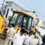 A bulldozer, several trucks filled with people, government vehicles, a DSP, three Police Station CIs, police personnel, and additional police forces arrived at a location in Guntur. Do you think this was the government machinery that arrived to solve a recent bomb blast case in Delhi? No, not at all. All of them came to demolish a temple.